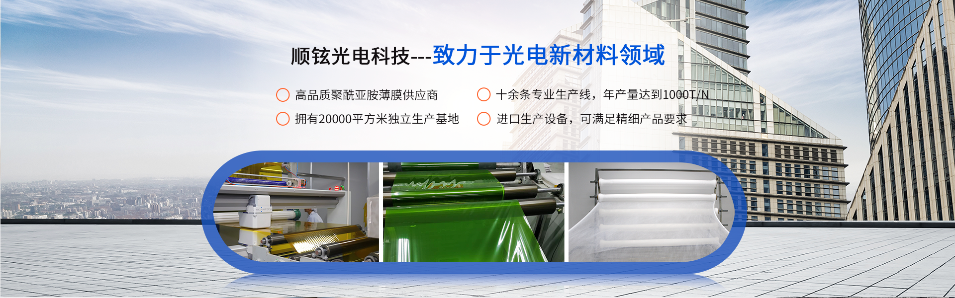 • 公司愿景:致力于成為國內 的功能性聚酰亞胺薄膜新材料研發、生產型企業